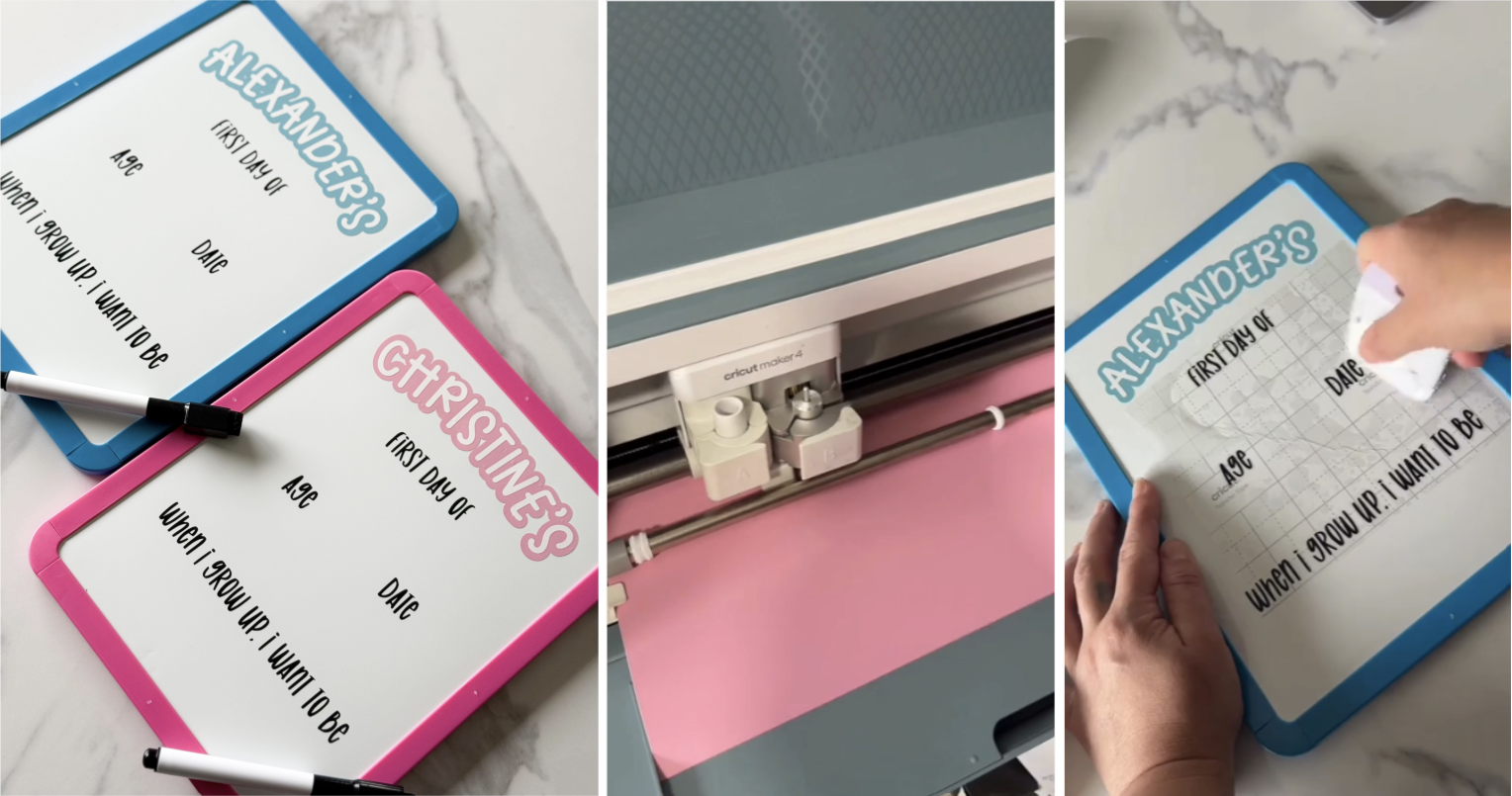 Using this $3.99 Small Whiteboard from ALDI, Teresa (@monochrome.haus_) created custom back-to-school boards to make her kids’ first day of school memorable! Using the dry erase and her Cricut Maker 4, she quickly and easily personalised the boards with their name and used vinyl to include their age, the date and what they want to be when they grow up. This adorable and easy DIY project makes for a perfect photo opportunity with the kids and can be reused each and every year for the milestone photos as the kids grow and move through school years and campuses.